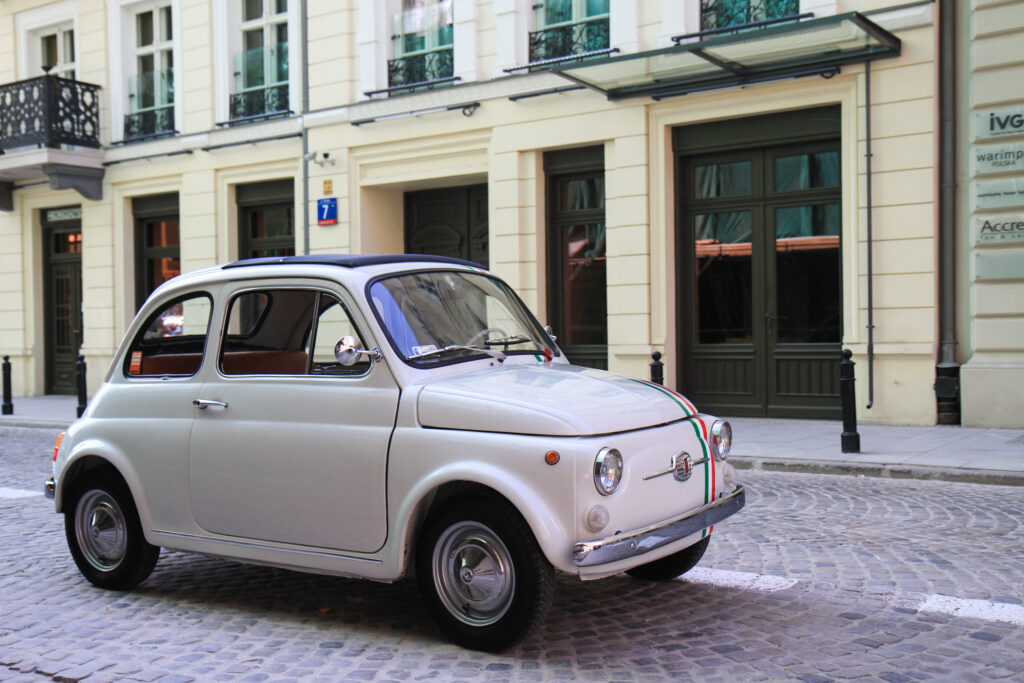 Luigi! Tak, to on! Przeuroczy mały fiacik 500 z kreskówki o samochodach. Piękne małe dzieło włoskiej stylistyki. Uroczy fiacik, których pełno można spotkać na wąskich uliczkach starych włoskich miast.